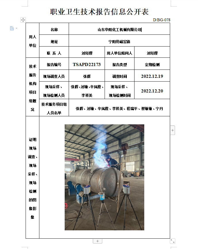 山东华阳化工机械有限公司职业卫生定期检测