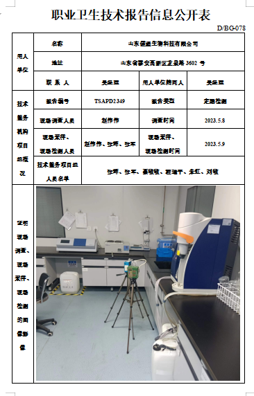 山东健通生物科技有限公司职业卫生定期检测