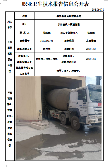 泰安鲁珠商砼有限公司职业卫生定期检测