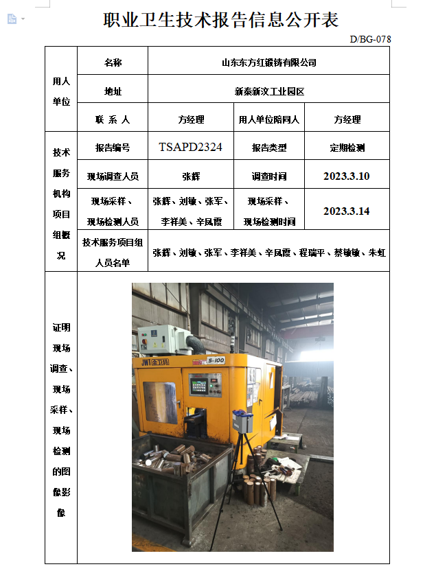 山东东方红锻造有限公司职业卫生定期检测