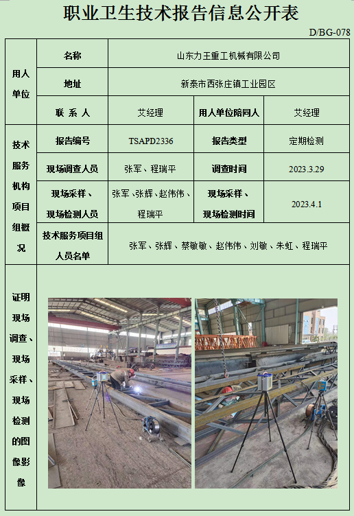山东省新泰市恒信链条有限责任公司职业卫生定期检测