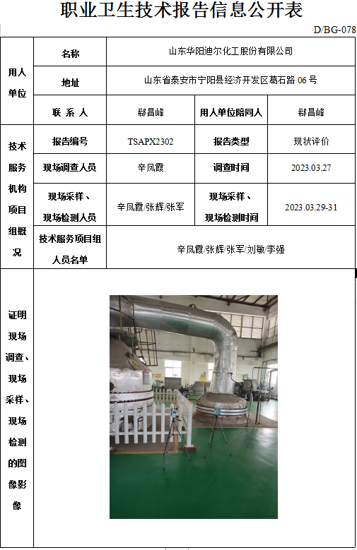 山东华阳迪尔化工有限公司职业病危害现状评价