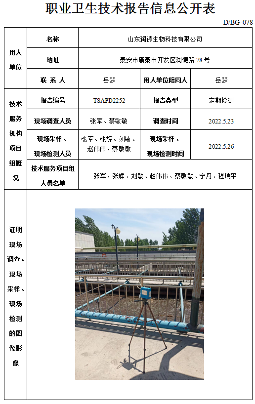 山东大禹水处理有限公司职业卫生定期检测