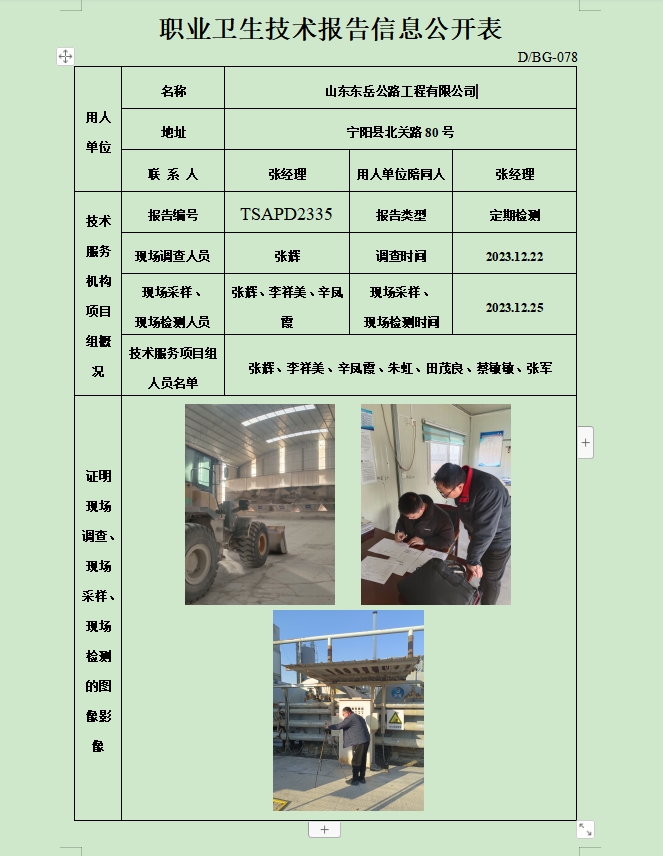 东东岳公路工程有限公司职业卫生定期检测