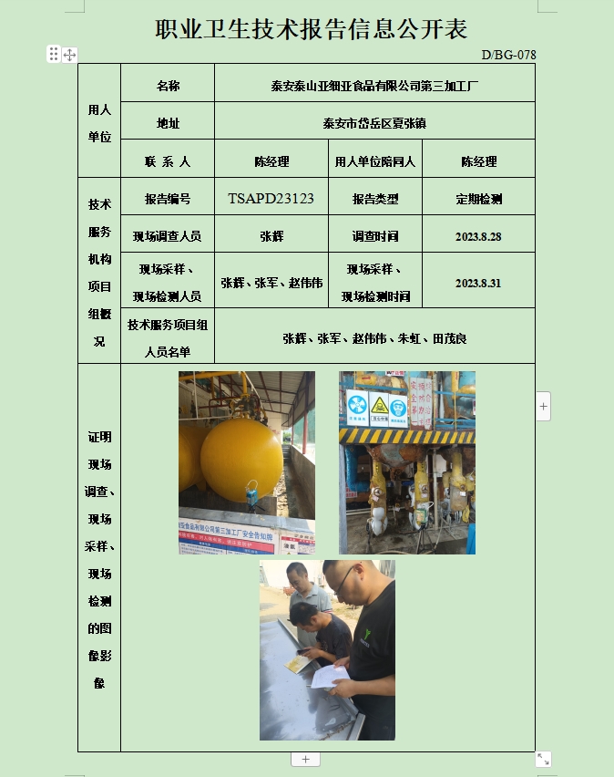 泰安泰山亚细亚食品有限公司职业卫生定期检测
