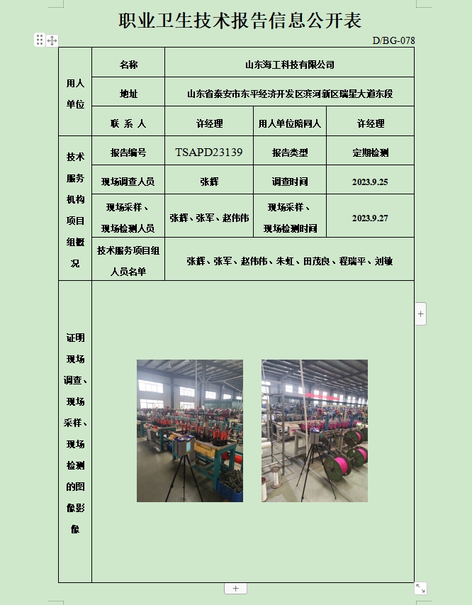 泰安科鼎特工贸有限公司职业卫生定期检测