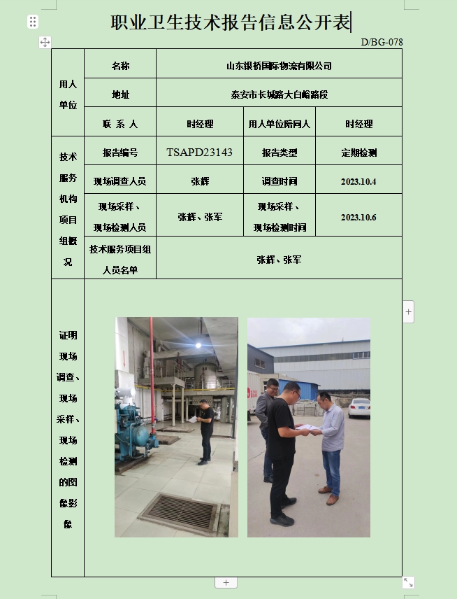山东银桥国际物流有限公司职业卫生定期检测