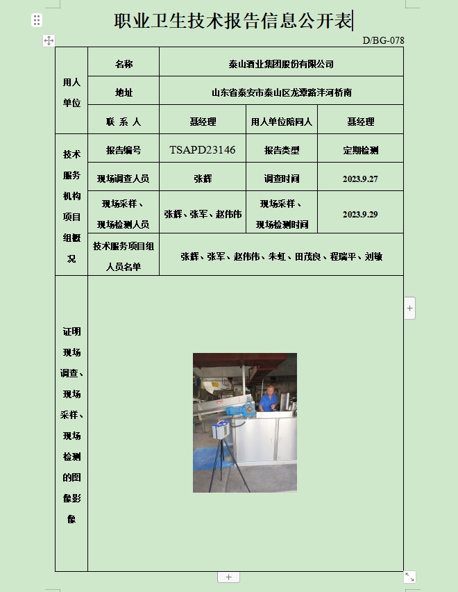泰安杰普石膏科技有限公司职业卫生定期检测