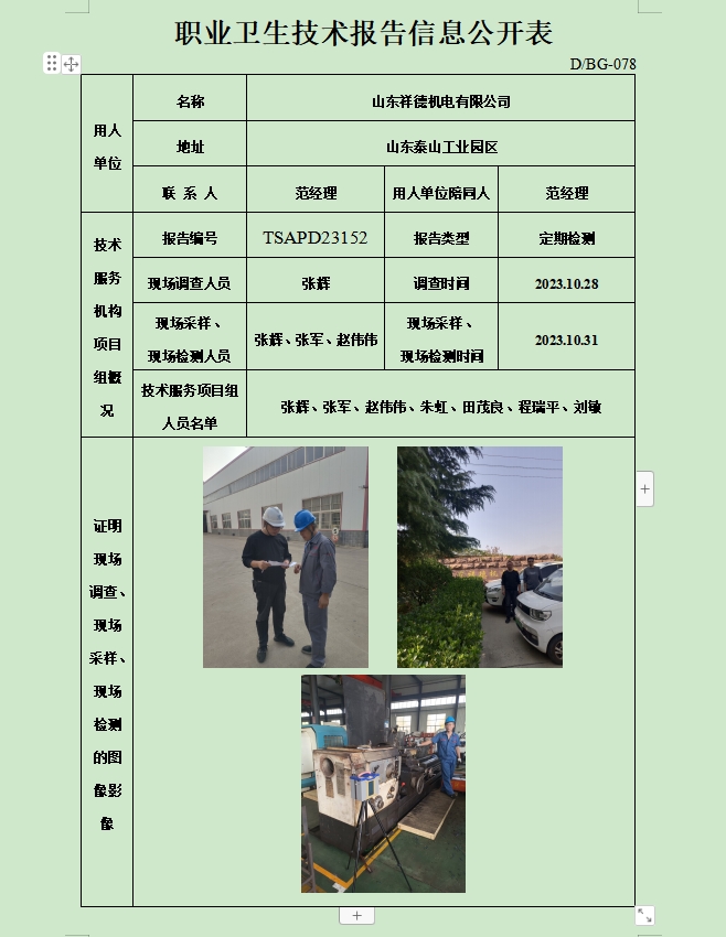 山东祥德机电有限公司职业卫生定期检测