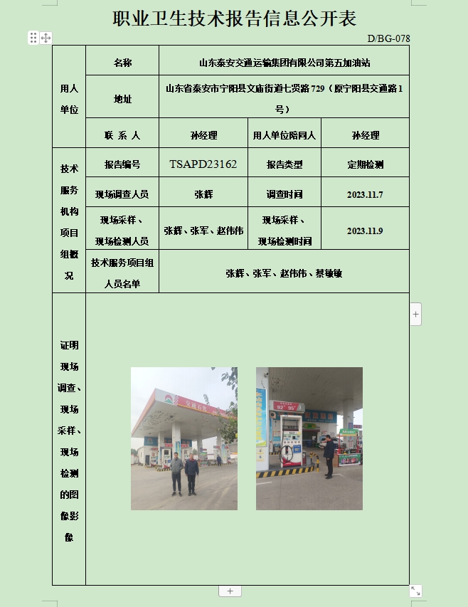 山东泰安交通运输集团有限公司第五加油站职业卫生定期检测