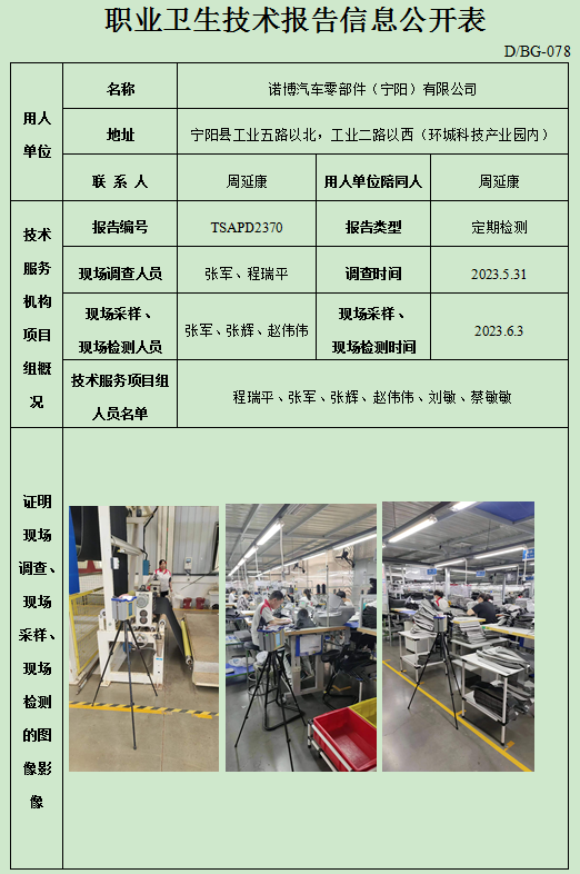 诺博汽车零部件(宁阳)有限公司职业卫生定期检测