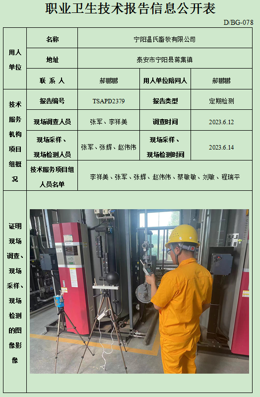 宁阳温氏畜牧有限公司职业卫生定期检测