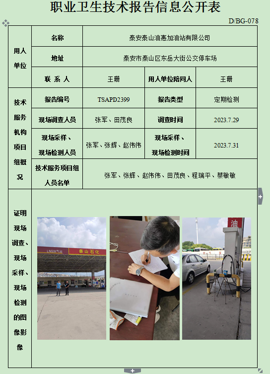 泰安泰山油惠加油站有限公司职业卫生定期检测