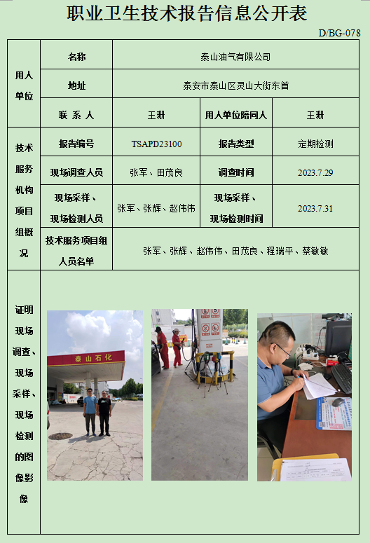 泰安泰山油惠加油站有限公司职业卫生定期检测