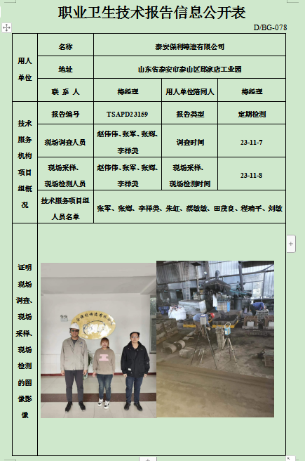 泰安保利铸造有限公司职业卫生定期检测