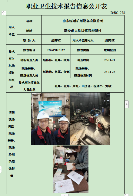 泰安市富凯机械制造有限公司职业卫生定期检测