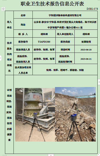 宁阳国开鲁珠绿色建材有限公司职业卫生定期检测