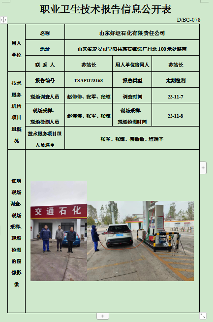 山东好运石化有限责任公司职业卫生定期检测