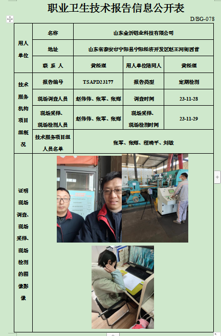 山东泰山华岳玻璃有限公司职业卫生定期检测