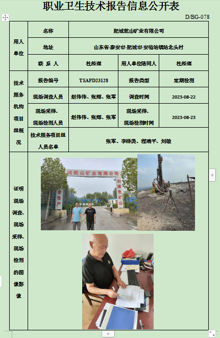 肥城乾山矿业有限公司 职业卫生定期检测
