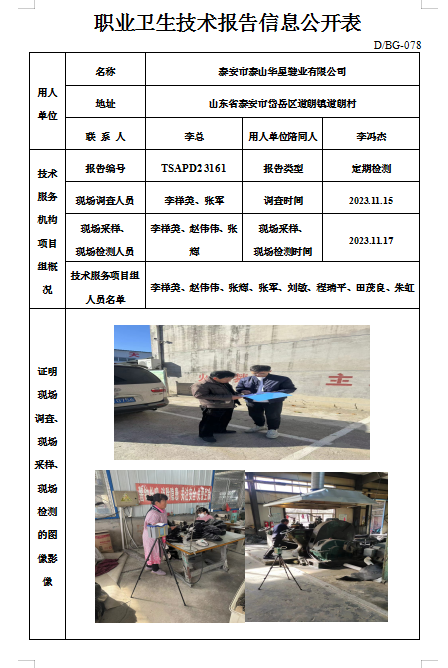 泰安市泰山华星鞋业有限公司职业卫生定期检测