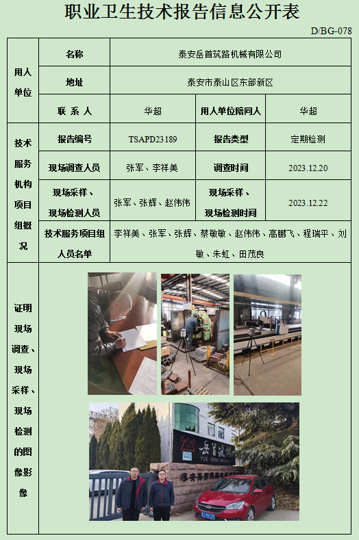 泰安岳首筑路机械有限公司职业卫生定期检测