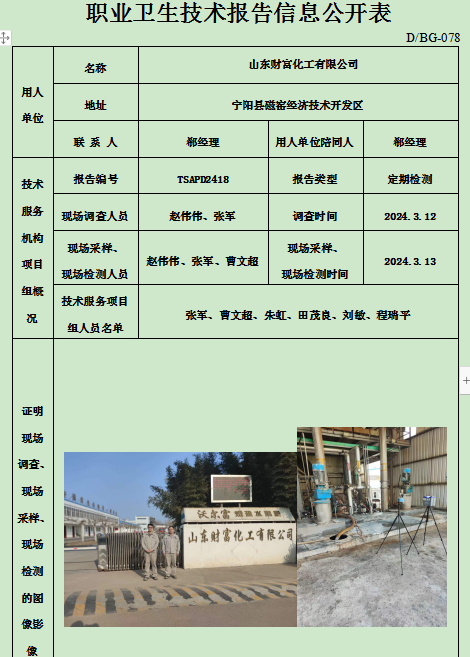 山东财富化工有限公司职业卫生定期检测