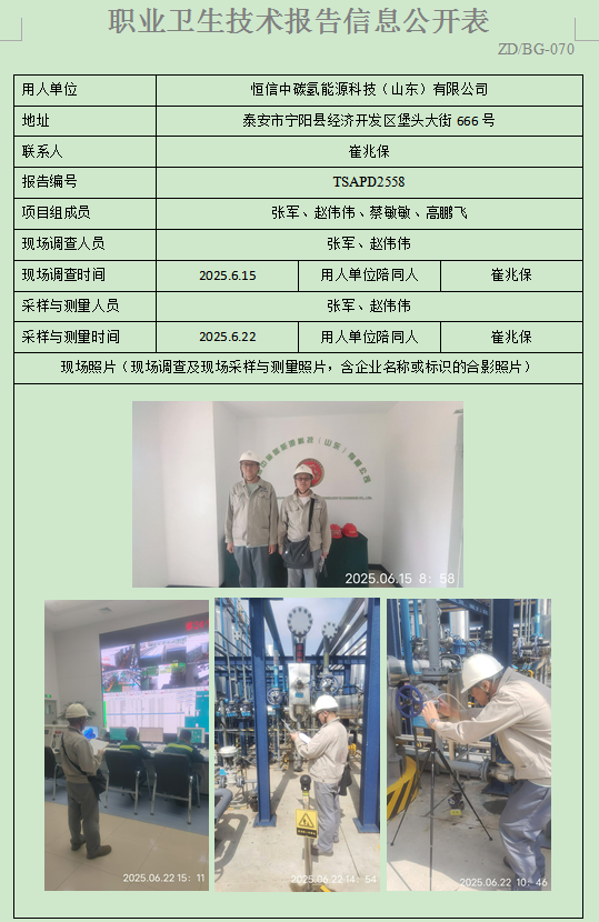 恒信中碳氢能源科技(山东)有限公司职业卫生定期检测