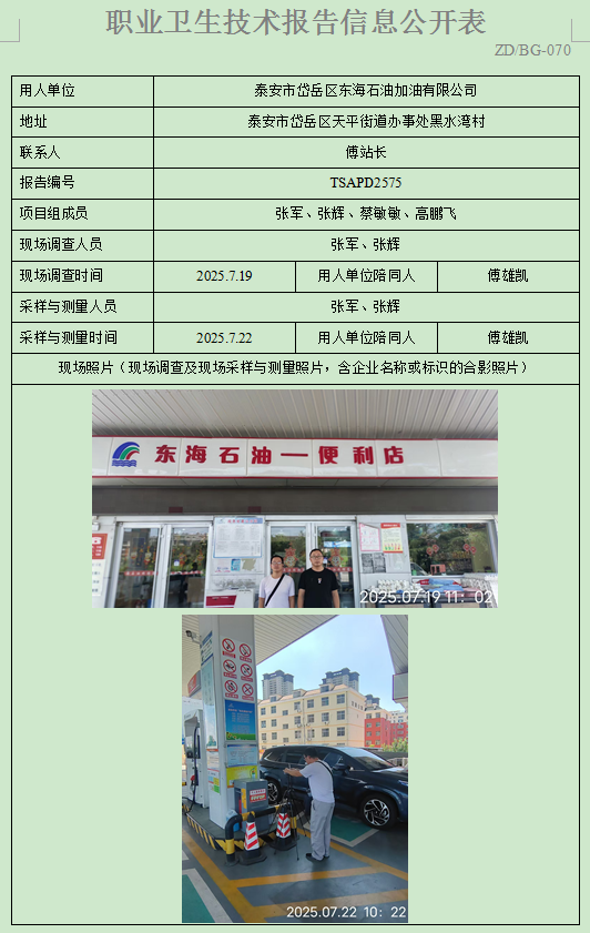 泰安市岱岳区东海石油加油有限公司职业卫生定期检测