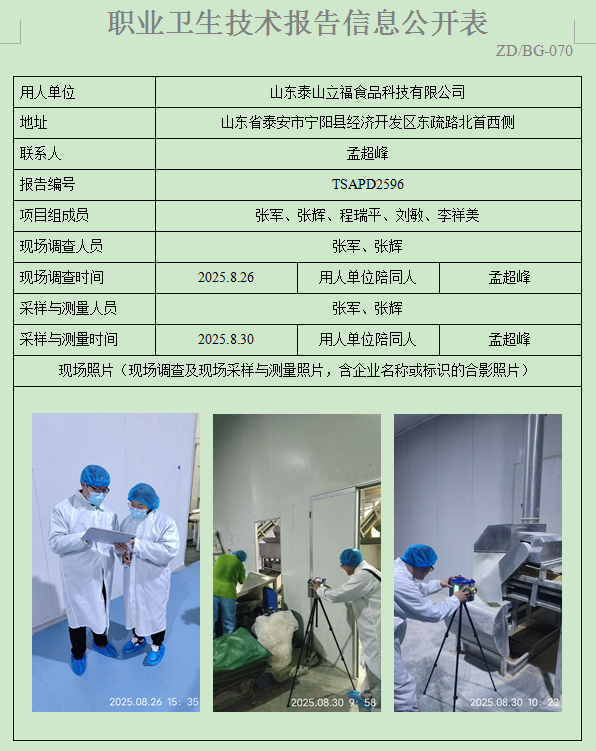 山东泰山立福食品科技有限公司职业卫生定期检测