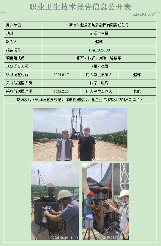 新汶矿业集团地质勘探有限责任公司职业卫生定期检测