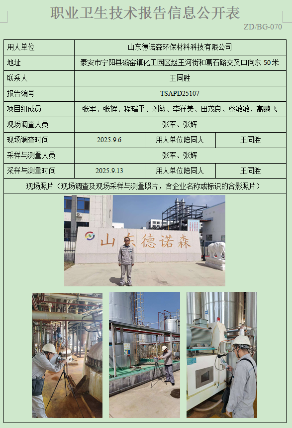 山东德诺森环保材料科技有限公司职业卫生定期检测