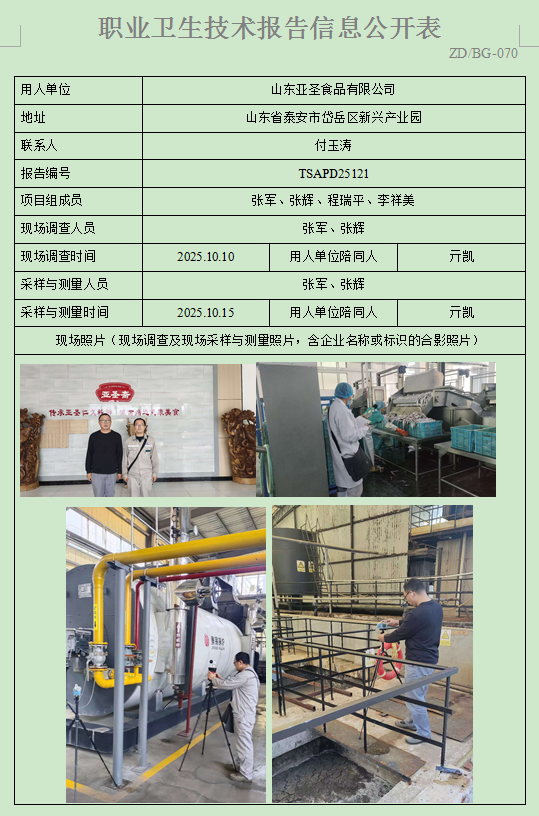 泰丰先行(泰安)科技有限公司职业卫生定期检测