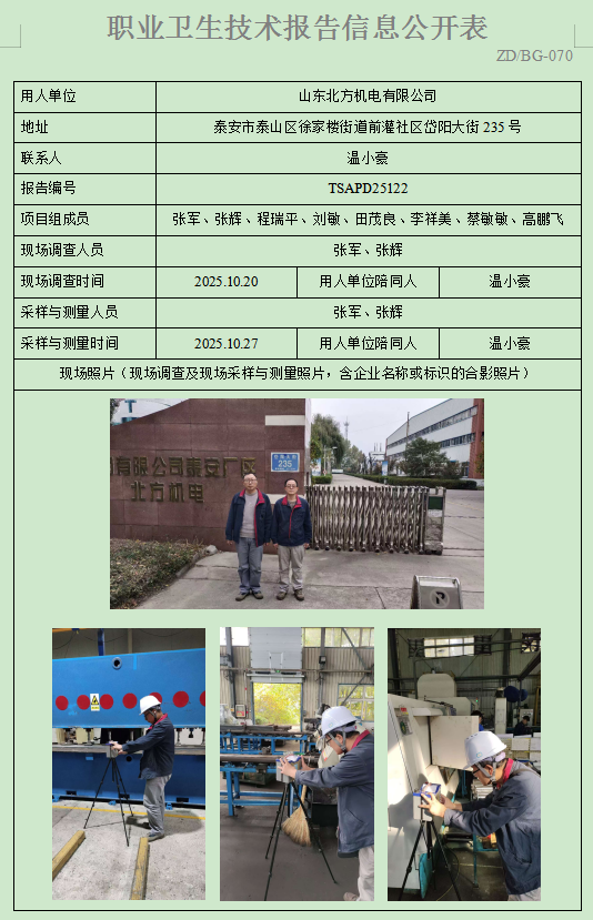 泰安市泰山九牧药业有限公司职业卫生定期检测