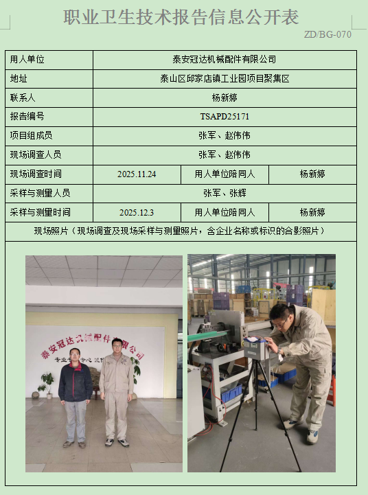 泰安鲁美汽车散热器有限公司职业卫生定期检测