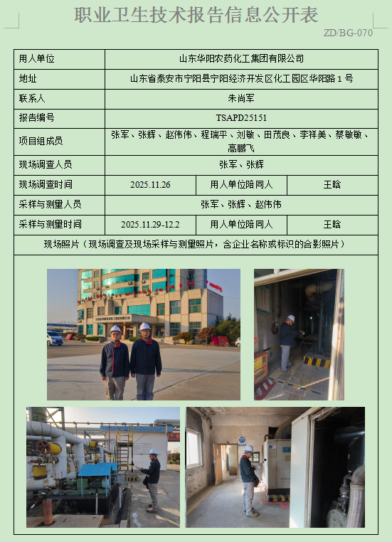 山东华阳农药化工集团有限公司职业卫生定期检测