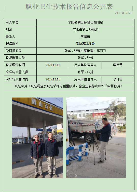 宁阳县鹤山乡鹤山加油站职业卫生定期检测