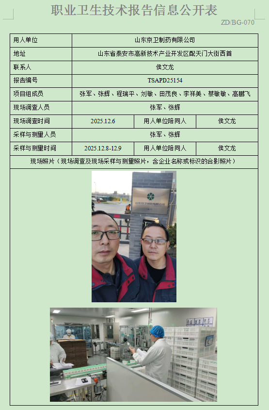 普瑞特(泰安高新区)智能装备有限公司职业卫生定期检测