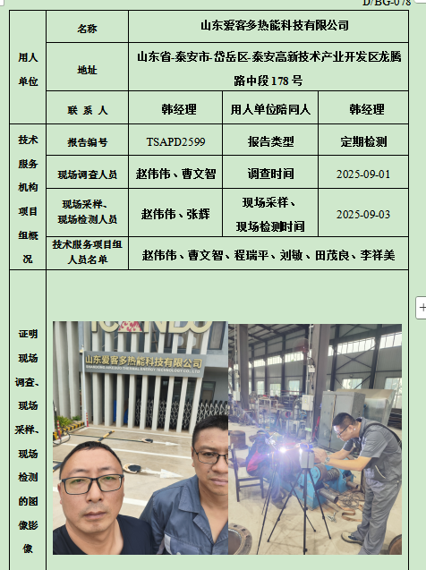 山东爱客多热能科技有限公司职业卫生定期检测
