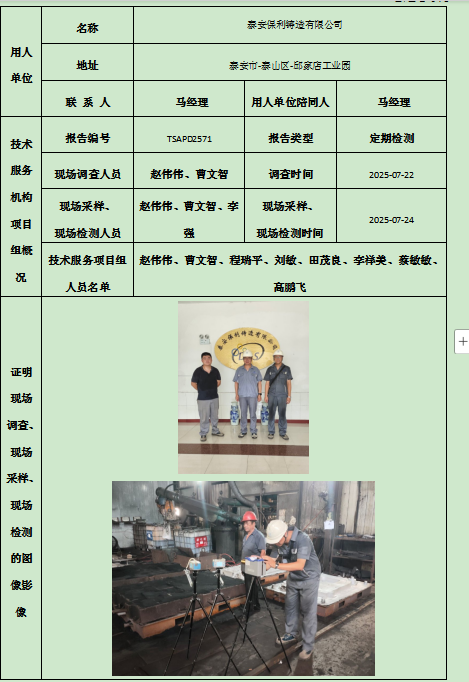 泰安保利铸造有限公司职业卫生定期检测