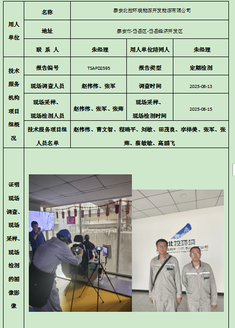 泰安北控环境能源开发能源有限公司职业卫生定期检测