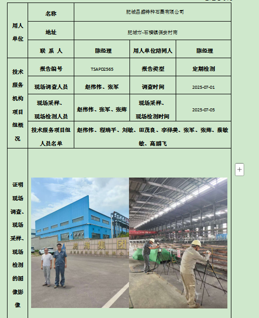 肥城昌盛特种石墨有限公司职业卫生定期检测