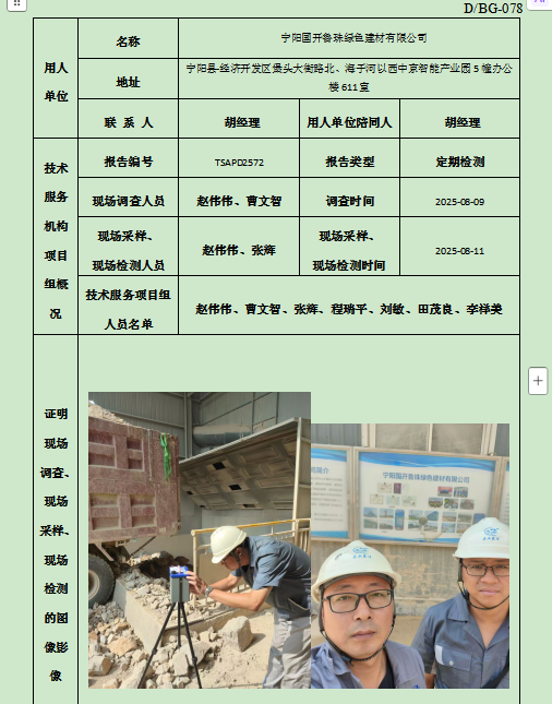 宁阳国开鲁珠绿色建材有限公司职业卫生定期检测
