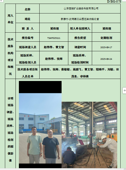 山东恒驰矿业装备科技有限公司职业卫生定期检测