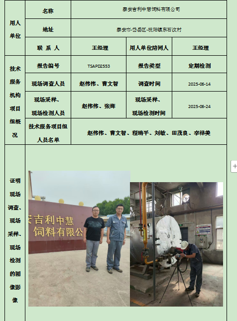 泰安吉利中慧饲料有限公司职业卫生定期检测