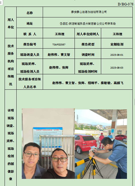 泰安泰山油惠加油站有限公司职业卫生定期检测
