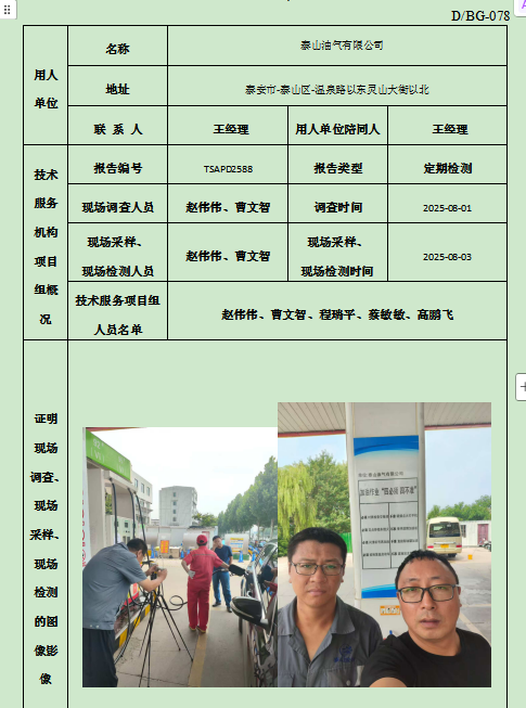 泰安泰山油惠加油站有限公司职业卫生定期检测