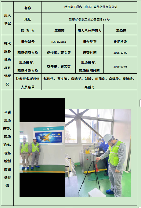 特变电工昭和(山东)电缆附件有限公司职业卫生定期检测