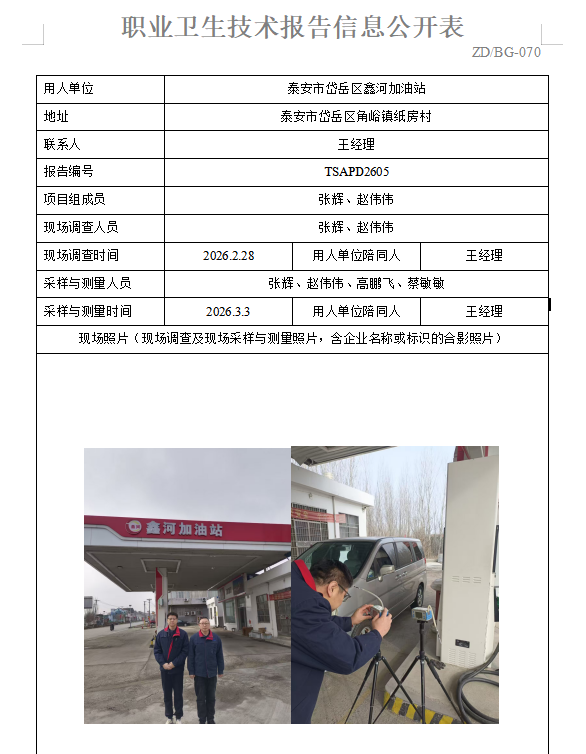 泰安市岱岳区鑫河加油站职业病危害因素定期检测