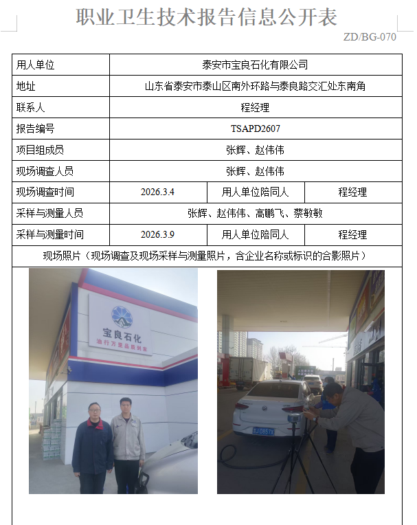 泰安市宝良石化有限公司职业病危害因素定期检测